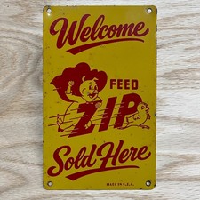 Welcome Zip Feeds Sold Here Painted Metal Advertising Door Push Sign