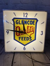Vintage Glencoe Quality Seeds Lighted Clock Farm Agriculture Advertising Sign