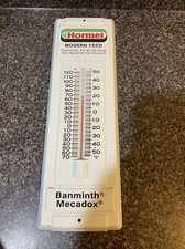 Vintage 1960s HORMEL MODERN FEED Metal Advertising Thermometer Sign - Working