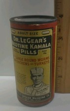 Vintage Dr LeGear's Nicotine Kamala Pills Paper Label Poultry Advertising Can