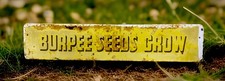 VINTAGE BURPEE SEEDS GROWS ADVERTISING DISPLAY RACK SIGN 29x6