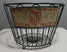 VINTAGE ADVERTISING WIRE EGG BASKET W SIGN MASTER FEEDS EGGLAC PELLETS OHIO