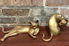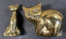 Vintage Mid-Century Modern 1960's Brass Cat Figurines Lot Of Two
