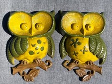 70s Vintage Set 2 Sexton Metal Owl Wall Decor Art Hangings Plaques Mid Century