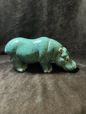 VTG MID-CENTURY FRANK ENGLE ART STUDIO CERAMIC BLUE HIPPO FIGURINE HTF