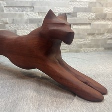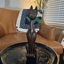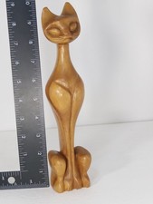 Vintage Mid Century Modern Carved Wood Cat 12" Tall