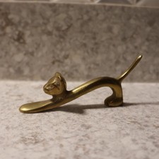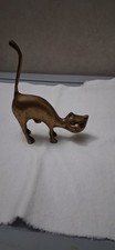 Vintage Mid Century Modernist Solid Brass Arched Cat Figurine Statue 4.5"