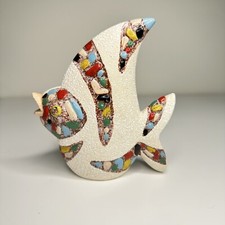 Vintage RIES of Japan MCM Ceramic Angel Fish Orange Peel Sharkskin Glaze