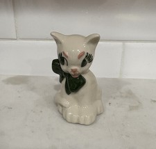 VTG Mid Century Modern Kitsch Long Eyelashes Bow Ceramic Cat Figurine