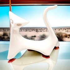 Mid Century Modern Cubist Cat Figurine White Jewel Eyes Japan 1950s Modernist