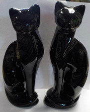 VTG Mid Century Modern Ceramic 9” Black Cats Pair Figurines Green Eyes MCM