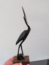 Vintage Hand Carved Horn MCM Retro Crane Heron Figurine w Wood Base 9.5" Tall