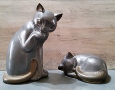 Mid Century Retro Pewter & Brass Metal Cat Figurines / Statues MCM Vintage