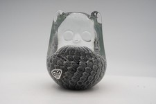 Vintage Mid Century FM Konstglas Glass Owl By Sweden Artist Ronneby Black & Grey