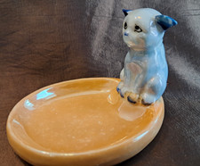 Vintage Japan Lusterware Blue Cat Figurine Vanity Trinket Dish Mid-Century MCM