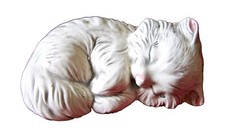 VINTAGE CERAMIC PERSIAN CAT /KITTEN SLEEPING HAND PAINTED MID CENTURY