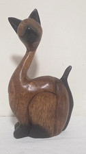 Vintage Wood Siamese Tiki Cat Mid Century Modern Seated MCM 9.75" Atomic curvy