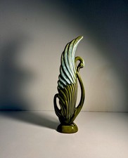Mid Century Glazed Ceramic Swan Statue-Olive & Blue- Perfect Condition