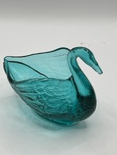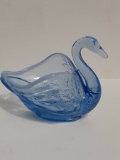 Vintage Fenton Opalescent Blue Art Glass Swan 4" Tall Trinket Dish