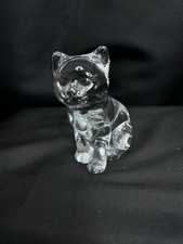 Vintage Fenton Art Glass Cat Paperweight Figurine Clear Sitting Kitten 4"