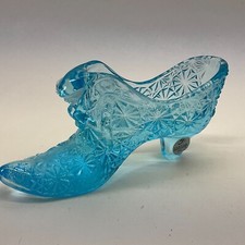 Fenton Art Glass Daisy & Button Blue Cat Shoe Slipper