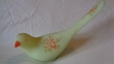 Fenton Satin Custard Bird Figurine Uranium Vaseline Glass Glows Unpainted Art