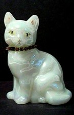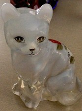 Vintage and Unique Fenton Opalescent White/Clear Handpainted Cat