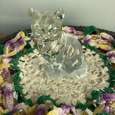 Vintage Fenton Art Glass Kitty Cat Paperweight Figurine Clear Sitting Kitten 4"
