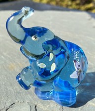 Vintage Fenton Art Glass Blue Elephant Animal Figurine Painted by S. Fisher