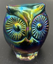Fenton Art Glass J. Cuttshaw Hand Painted Glass Owl Cobalt Carnival Satin (I)