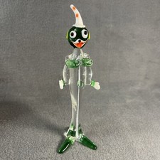 Hand Blown Glass Art Clown Green - Multicolored 6.5”Tall Vintage