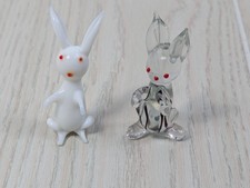 Vintage Glass Rabbit Miniature Figurines Clear w/ Black Red Eyes White albino