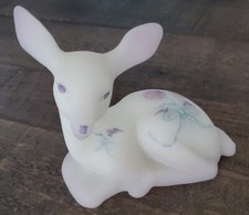 Vintage Fenton Glass White Satin Fawn Deer Figurine, Hand Painted By A. Sallee