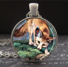Fennec Fox Necklace Vintage Naturalist Art Pendant Hand Crafted Glass Jewelry
