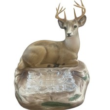 Vintage 1950’s Chalk Ware Deer w Glass Ashtray Trinket Desk Accessory Soap Dish