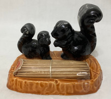 Vintage 1950's Squirrel Skunk Porcelain Glass Japan Toothpick Holder Enesco