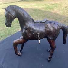 Vintage Wrapped Leather Horse Statue 13" X 12" X 4" Made In India Glass Eyes *