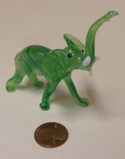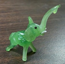 Vintage Green Blown Miniature Glass Elephant 2" x 1.5"