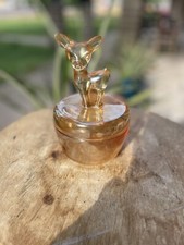 mcm vintage art glass peach luster Fawn Animal Powder Box Candy Dish Covered