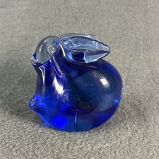 Blue Handblown Art Fine Crystal Glass Bunny Rabbit Figurine Paperweight Vintage