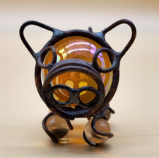 Vintage Metal Crafted Wired Iridescent Brown Glass Pig Figurine