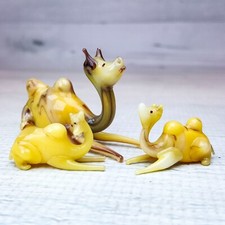 Vintage 3pc Miniature Camel Figurines Slag Glass Tan & Brown Handmade 1.25"
