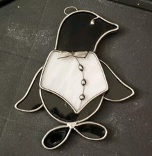 Vintage Stained Glass Penguin Decor