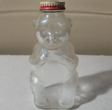 VINTAGE SNOW CREST GLASS BOTTLE BEAR BANK WITH ORIGINAL CAP 7" TALL