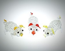 Vintage Trio of Hand Blown Glass Lattice Work Pigs From Disneyland Anaheim