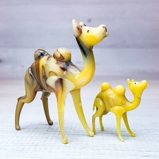 Vintage 2pc Miniature Standing Camel Figurines Slag Glass Tan & Brown Handmade