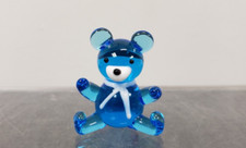 Vintage Hand Blown Glass Teddy Bear blue Collectibles Miniature 1.5 in