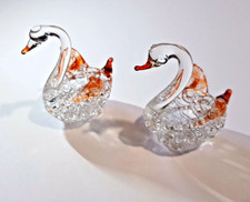 ⭐ 2x VINTAGE MURANO GLASS MINIATURE SWANS Decoration Gift 6/4cm