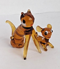 Vintage Amber Deer Fawn and Cat Art Glass Miniature Figurines with White Spot