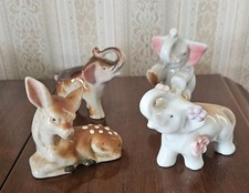 Vintage 1950s Ceramic Glass Figurines Elephants, Deer